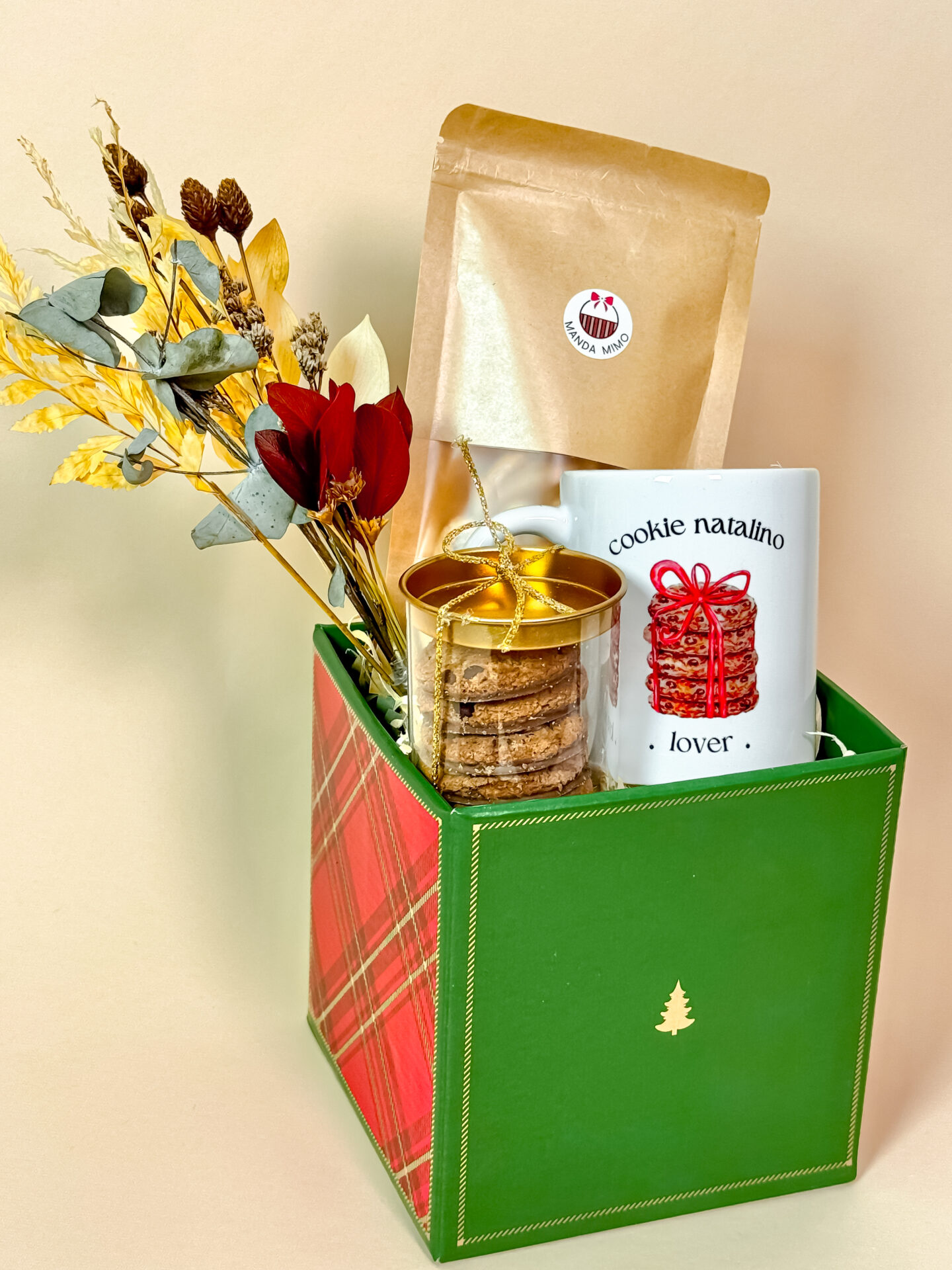 Presenteie com carinho neste Natal! O Cachepô Árvore traz cookies artesanais deliciosos, mix de nuts selecionados e uma caneca temática super fofa, perfeita para acompanhar um café quentinho ou chocolate quente. Um gesto doce, encantador e cheio de significado.